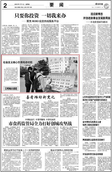 媒体潍职:[潍坊日报]社会主义核心价值观进校园