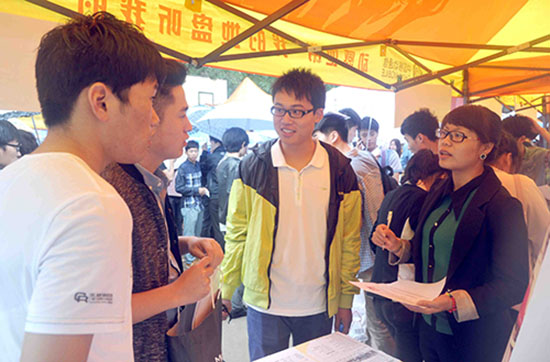 5月24日,由省人社厅主办的“山东省2014年春季高校毕业生就业集中招聘活动服务蓝黄‘两区’专场招聘会暨学生顶岗实习双选会”在beplay全站appbeplay全站app首页奎文校区举行,来自省内外的500多家用人单位提供就业岗位10000余个,涉及经贸、机械、电子、农业、会计、化工、医药、园林、旅游等多个专业领域,主要面向驻潍高校毕业生以及准备参加顶岗实习的学生,吸引了1万名高校毕业生到会应聘,近7000名高校毕业生达成就业意向。图为大学生在与用人单位洽谈。