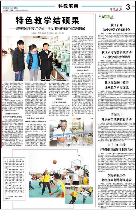“老师,我想订一个巧克力水果蛋糕!”2012级会计电算化专业学生张晶晶一脸兴奋地告诉记者,“滨海校区有蛋糕房了,我们不用去潍坊,在校园内就可以买到生日蛋糕,物美价廉,口感奇好。”记者采访了解到,食品加工技术专业以学生实习实训为出发点,2011年师生共同创办蛋糕房,在蛋糕房成功运作的基础上,2013年9月又在滨海校区开办了蛋糕店,糕点食品涵盖了蛋糕、面包、西点、饮品、特色糕点五大系列30多个品种,更好地满足了广大师生的需求。