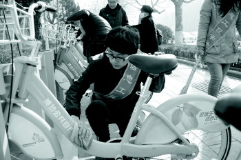 3日,在潍坊市东风街,志愿者正在擦拭公共自行车和停车桩。随着雷锋日的临近,beplay全站appbeplay全站app首页信息工程beplay(中国)的志愿者到潍坊街头,清洁公共自行车和停车桩。 本报记者 孙国祥 李涛 摄影报道