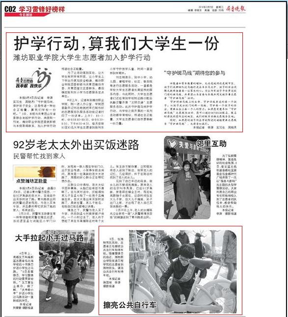 媒体潍职:齐鲁晚报报道我院志愿者服务活动