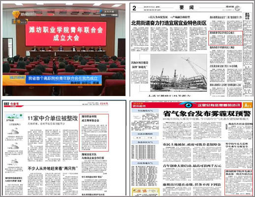10月31日,beplay(中国)召开青年联合会成立大会。潍坊日报、潍坊晚报、齐鲁晚报、滨海日报等媒体作了报道,潍坊电视台新闻综合频道以《我省首个高职院校青年联合在我市成立》为题作了报道。