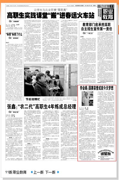 媒体潍职:[中国青年报] 李会娟:国赛荣誉成就今天梦想