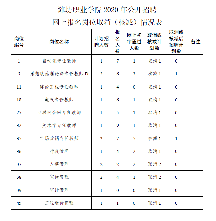 beplay全站appbeplay全站app首页2020年公开招聘网上报名岗位取消(核减)情况表