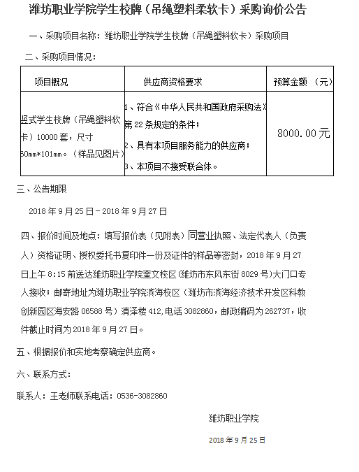 beplay全站appbeplay全站app首页学生校牌(吊绳塑料柔软卡)采购二次询价公告