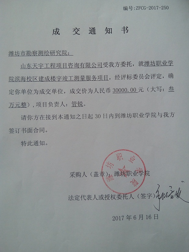beplay全站appbeplay全站app首页滨海校区建成楼宇竣工测量服务项目成交通知书