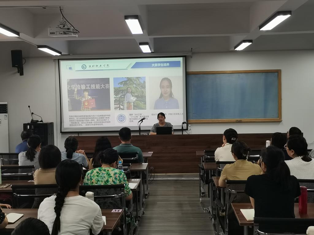 随后,来自化学工程beplay(中国)的国家级技能大赛一等奖指导教师——邹芳老师开启第一讲,她从赛项情况、指导教师团队建设、学生选拔与培养以及总结反思四方面作专题交流。该院国家级在线开放课程——《外贸基础—函电与单证》主要成员徐小珺老师从为什么建设开放课程、怎样建设开放课程以及课程建设的反思三方面进行经验分享。两位老师的无私分享为该院技能大赛指导和课程建设指出了改进的方向,拓展了思路。