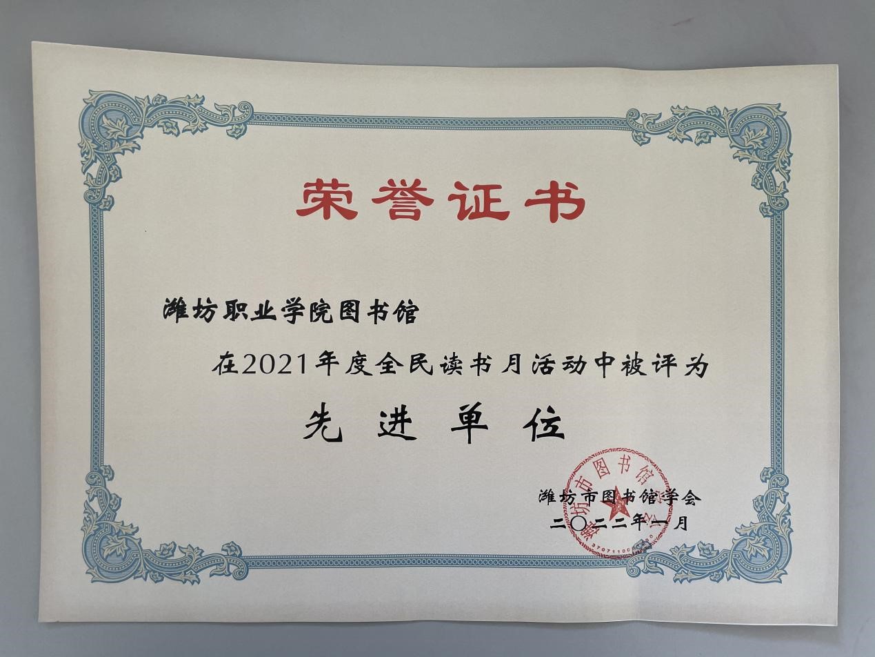 图书馆获潍坊市“2021年度全民读书月先进单位”
