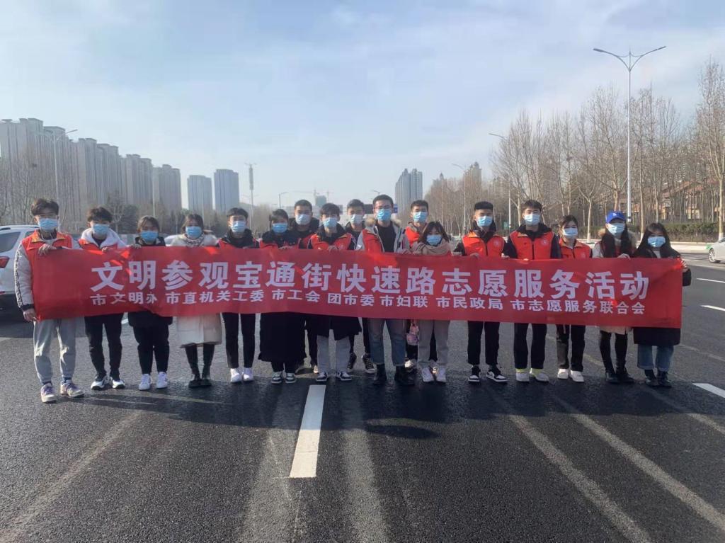2021年12月31日,国际商务beplay(中国)团总支联合“潍爱”青年志愿者协会师生一行17人参与了潍坊市宝通街快速路通车仪式之前的市民文明参观志愿服务活动。