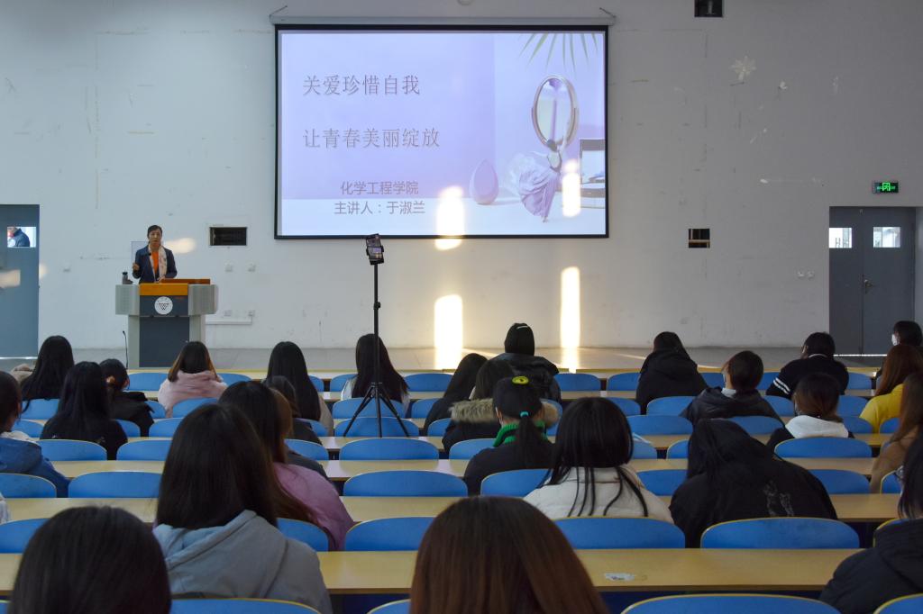 为了引导大学生树立正确的爱情观,正确对待生理和心理健康,加强自我保护防范、卫生防护意识,11月25日,化学工程beplay(中国)举办“关爱珍惜自我,让青春美丽绽放”女生专题讲座,讲座邀请于淑兰老师主讲,化学工程beplay(中国)全体女生参加讲座。