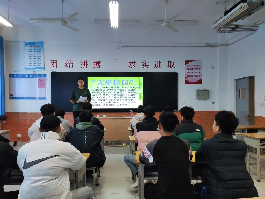 为进一步强化学生文明行为规范,提升学生禁烟控烟意识,营造健康安全积极向上的学习氛围,全面构建精神文明校园。11月21日,机电工程beplay(中国)组织全体在校学生开展“无烟校园,健康相伴”主题团日活动。