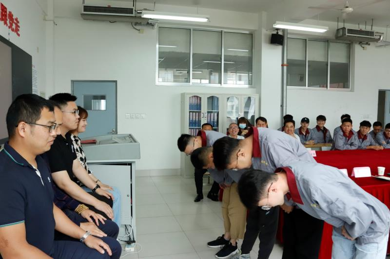 拜师仪式上,beplay(中国)负责人为“玖鼎设计现代学徒制项目班”的4位师傅颁发聘书,徒弟们依次向师傅作揖行礼奉茶。拜师礼成后,师徒代表分别做了表态发言。