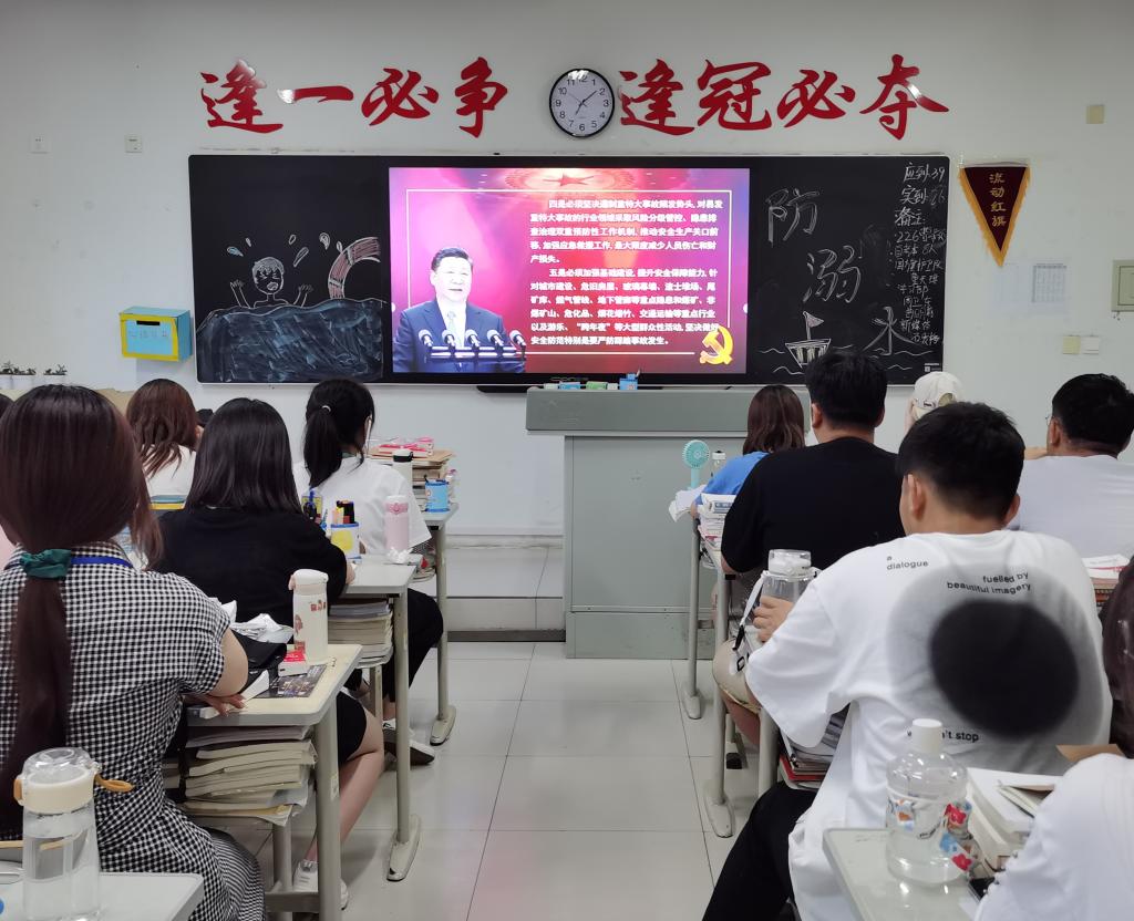 主题班会上,组织同学们观看了《生命重于泰山——学习习近平总书记关于安全生产重要论述》电视专题片,认真学习了习近平总书记关于安全生产重要论述,切实提高同学们的思想认识,牢固树立安全发展理念。随后,结合近年来各大、中、小学生发生的溺水事件,通过典型事例分析、视频展示等形式向学生们介绍了溺水事故的特性、发生的原因和防溺水安全知识以及自救技巧等,牢记防溺水措施”六不准”,让同学们充分认识到安全的重要、生命的可贵,加强自我保护。