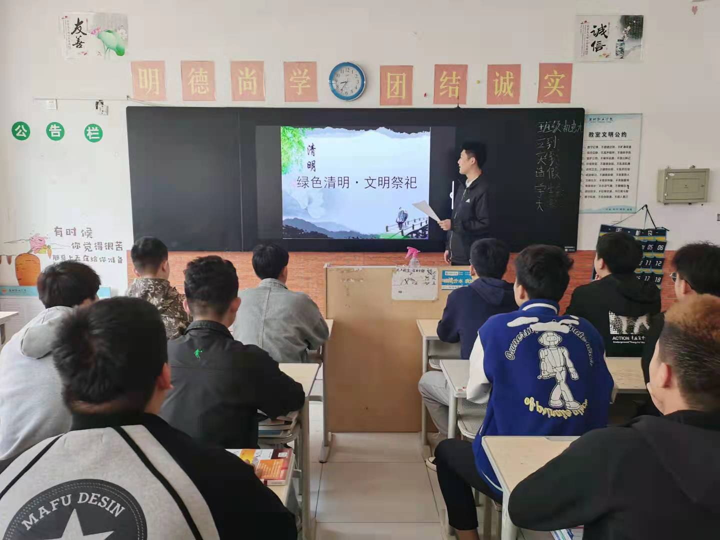 活动中,各班级首先根据“绿色清明·文明祭祀”的理念发出倡议,号召全体师生改变旧的祭祀形式,大力提倡文明祭扫,平安祭祀。提倡献一束花、敬一杯酒、植一棵树,追寻先烈足迹,讲好先辈故事,告别祭扫陋习,营造文明社会新风尚。其次,各班主任围绕清明节的来历和各地习俗,加深学生对清明节的认知,并让学生深刻感受到中华民族优秀的传统文化。最后,强调学生安全教育,强化个人防护、戴好口罩,注意出行的交通安全,特别强调上坟扫墓防火方面的安全意识。