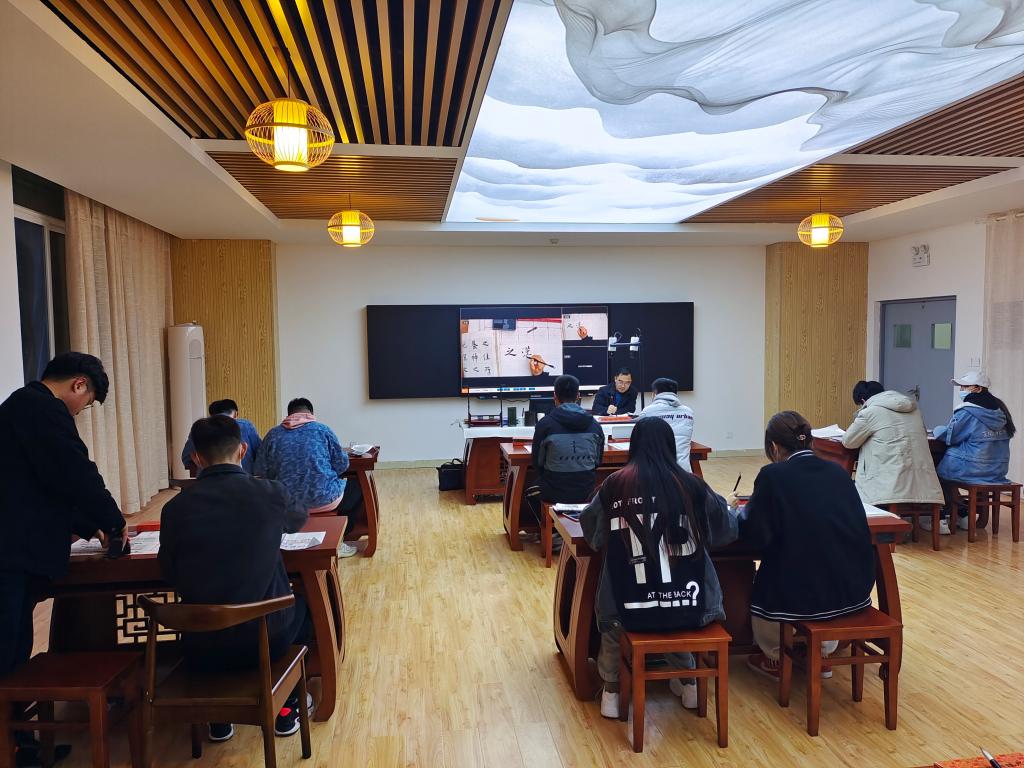 上课过程中,授课老师结合自身书法学习的实践经验,向同学们讲解了书法的历史、演变过程、形体变化以及学习策略等方面的内容,同学们兴致高涨。授课教师指出,书法的学习不是一蹴而就的,既要熟练技法,还要修炼思想境界,只有坚持学习,百折不挠才能一步步登堂入室。