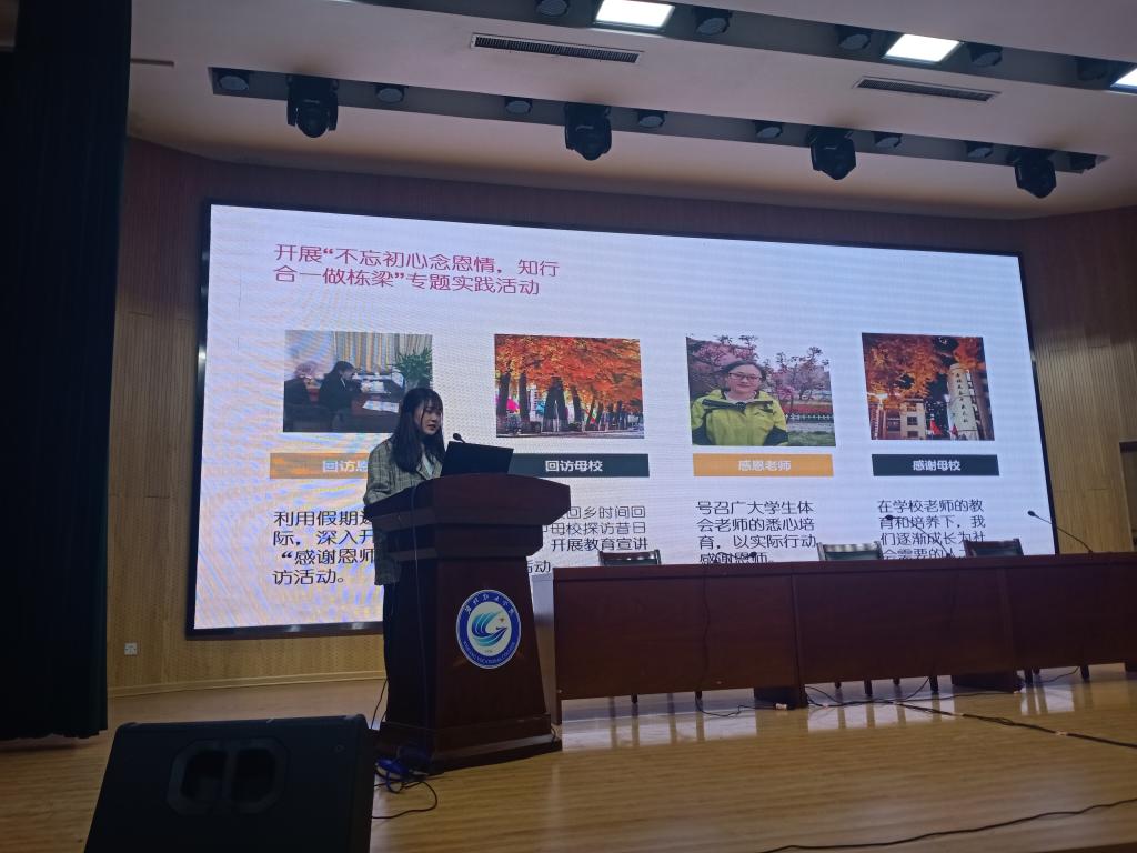 该院寒假期间共组建了5个总队,26个支队,100余个大队,全员参与社会实践活动。各团队从前期调研、准备实施、精准实施、意见反馈、总结反思等方面进行展示。有的团队主题是“情系家乡观变化,返乡献策助发展”,开展了随手拍活动,用手机、相机记录家乡的美好瞬间和发展变化;有的团队主题是“不忘初心念恩情,知行合一做栋梁”,回访母校,与老师交流自己丰富的大学生活,向高中学弟学妹们介绍学习经验,并介绍我院的招生信息。有的团队主题“创新创业启思维,学术科技展宏图”,学生深入企业进行职场体验活动,积累社会经验的同时了解就业需求;有的团队主题是“志愿服务暖人心,独秀学子铸梦圆”,学生深入街道、社区等场所开展疫情防控知识宣传、卫生清扫等志愿服务,为自己的青春抹上志愿者炫目的色彩。不管是社会实践团队的队员还是各社会实践小组的成员,他们积极投身于社会实践的热情、认真负责的态度和拼搏上进的精神赢得了在场同学的阵阵掌声。
