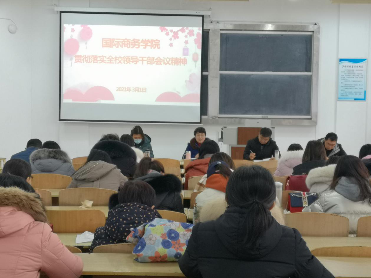 国际商务beplay(中国)召开专题会议贯彻落实全校领导干部会议精神