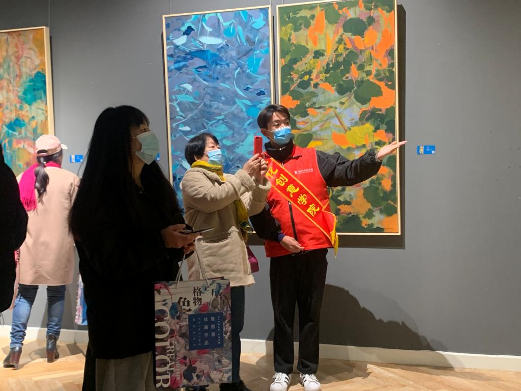 本次活动既是对“国际志愿者日”精神的传承,也是beplay全站appbeplay全站app首页第十五届社团文化艺术节的重要组成部分。为尽快熟悉工作环境,更好为观众们提供优质服务,同学们提前一个小时到达潍坊市美术馆,熟悉各个楼层的基本信息以及展厅的展览内容。活动过程中,志愿者们分工明确,责任清晰,有的负责维持现场参观秩序,有点耐心为观众们讲解展览的相关知识,还有部分志愿者在大厅负责发放展览宣传册,并接收观众们的反馈与意见。