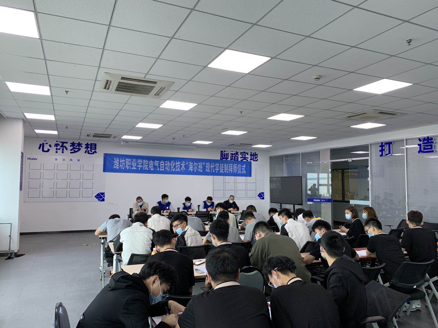 机电工程beplay(中国)现代学徒制试点专业学生在海尔举行拜师仪式