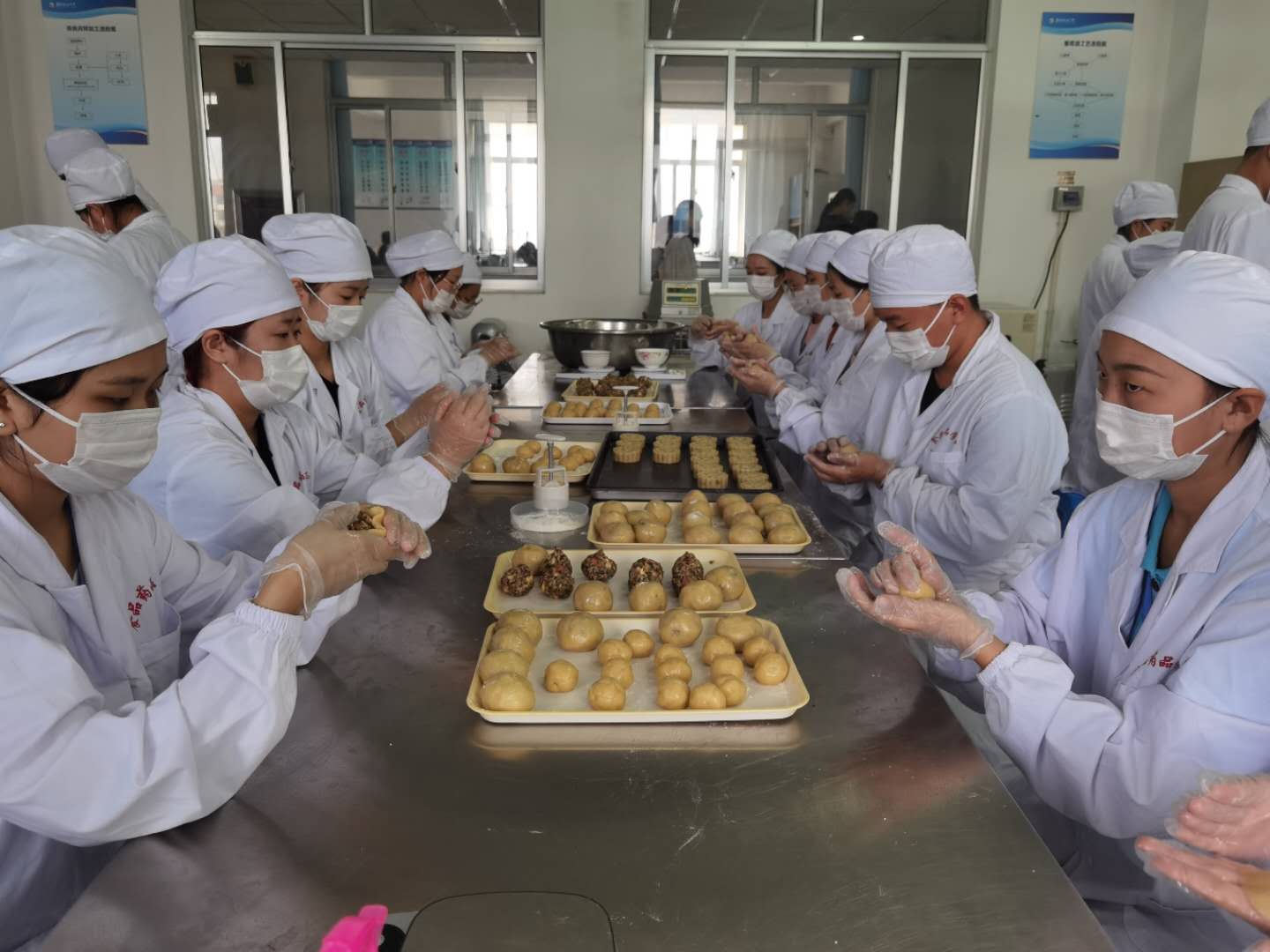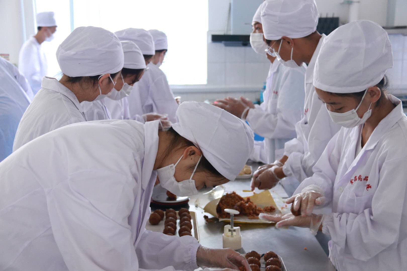 本次实训活动,在食品药品beplay(中国)食品技术教研室老师们的精心组织和耐心指导下,打破了原有的班级限制,将各专业学生分为调馅、和面、成型,烘烤、包装,销售等六个生产工作小组,轮岗循环。学生从开始的手法生疏、次品多到手法娴熟、零次品,经过严格的过程性技能考核,最终制作出的月饼品相金黄饱满、口感软糯细腻,得到全院师生的一致好评。在实训的过程中,指导教师与学生一起切磋技艺,感受着中国传统节日文化的魅力,同时严把原料质量安全关,增强学生食品生产的质量意识、安全意识和服务意识,确保生产出的产品让师生吃的满意、吃的放心。
