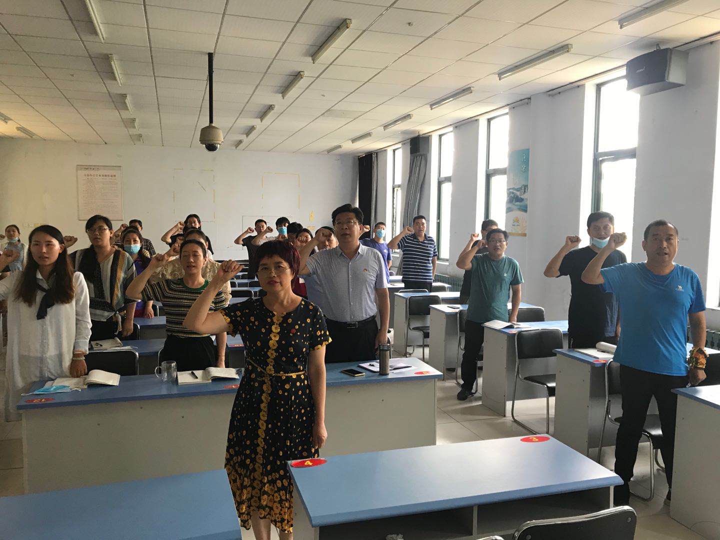 为庆祝中国共产党成立99周年,进一步统一党员思想,凝聚共识,充分发挥基层党组织的战斗堡垒作用和党员在各项工作中的先锋模范作用, 6月25日下午文化创意beplay(中国)党总支组织全体党员,在奎文校区16号楼524房间,开展了“学党史,强党性,坚守党旗下对党忠诚的誓言”主题党日活动。