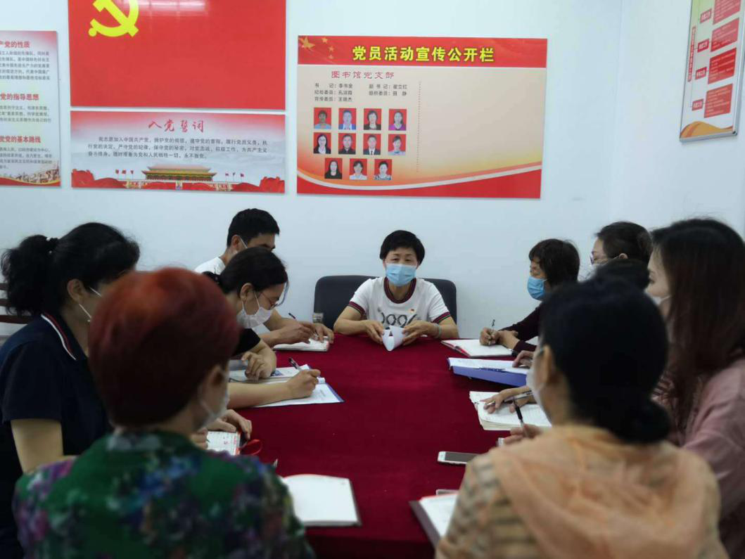 6月23日,图书馆党支部负责同志以《立足岗位讲奉献,建设最美图书馆》为题讲授党课,图书馆全体党员参加学习。