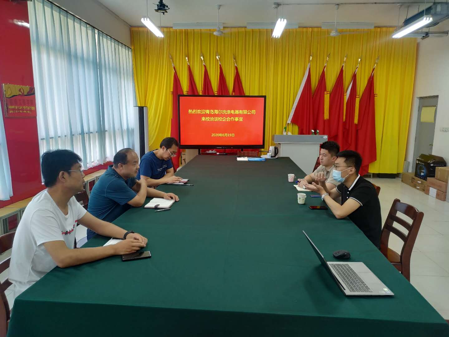 6月19日上午,青岛海尔洗涤电器有限公司人事部部长冷栋一行2人到机电工程beplay(中国)洽谈教育部现代学徒制合作。机电工程beplay(中国)院长解永辉、产学研合作办公室、智能制造教研室及相关班主任参加洽谈会。