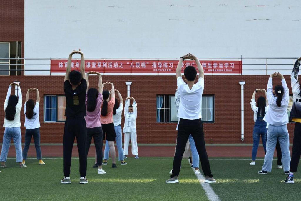 近日体育运动发展中心在滨海、奎文校区面向全院师生开“体育健身大课堂”系列活动之“八段锦”指导练习课,广大师生积极参加本次培训活动,本次活动持续四周时间。长期练习“八段锦”能增强学生体质健康、提高免疫力、疏导心理焦虑,帮助学生在体育锻炼中享受乐趣。