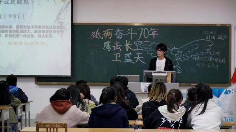为庆祝中华人民共和国空军成立70周年,加强学生爱国主义教育, 11月14日,信息工程beplay(中国)组织开展“砥砺奋飞七十年,鹰击长空卫蓝天”主题团课活动。本次活动面向全体学生,以班级为单位进行。