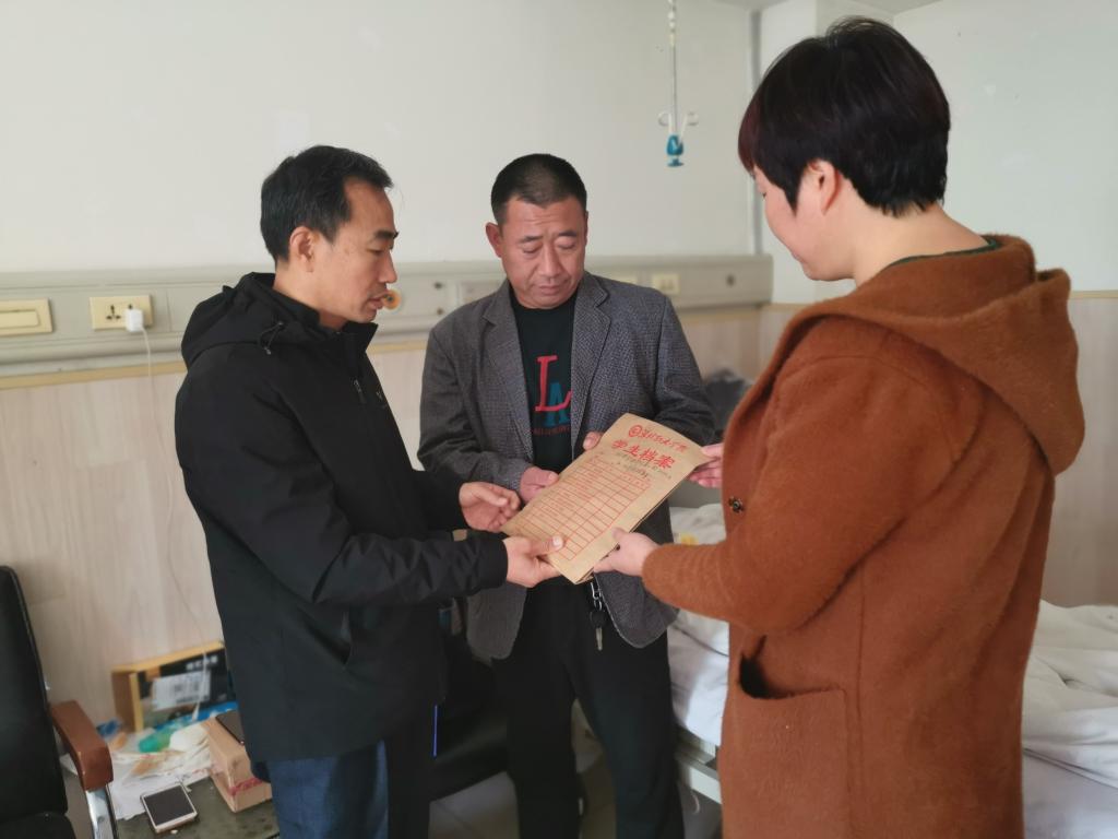 10月29日上午,经营管理beplay(中国)党支部主要负责同志、辅导员办公室(团总支)老师以及学生班主任老师前往诸城市中医院看望身患重病的我院18级学生王永青同学,并将凝聚着全院教师爱心的14899.5元的捐款交给王永青同学家长。