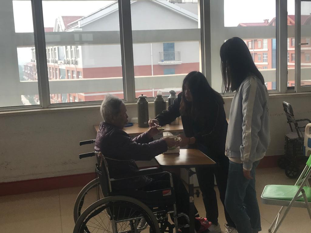 同学们在社团负责人的带领下自觉分成两支队伍,一队同学负责打扫卫生,他们撸起袖子,弯下身子,拖地、擦桌子、擦玻璃,不怕脏,不怕累,不一会儿功夫,室内整洁如新;另一队同学负责陪老人聊天解闷。老人们或讲述着难忘的故事,娓娓道来,仿佛回到了从前;或唱起激情澎湃的红歌,大家受到感染,也都跟着唱起来,爱国的气氛打动了在场的每一位。在本次志愿服务活动中,社团成员们热情开朗,积极主动,受到老人们的喜爱和安养中心工作人员的高度赞扬。
