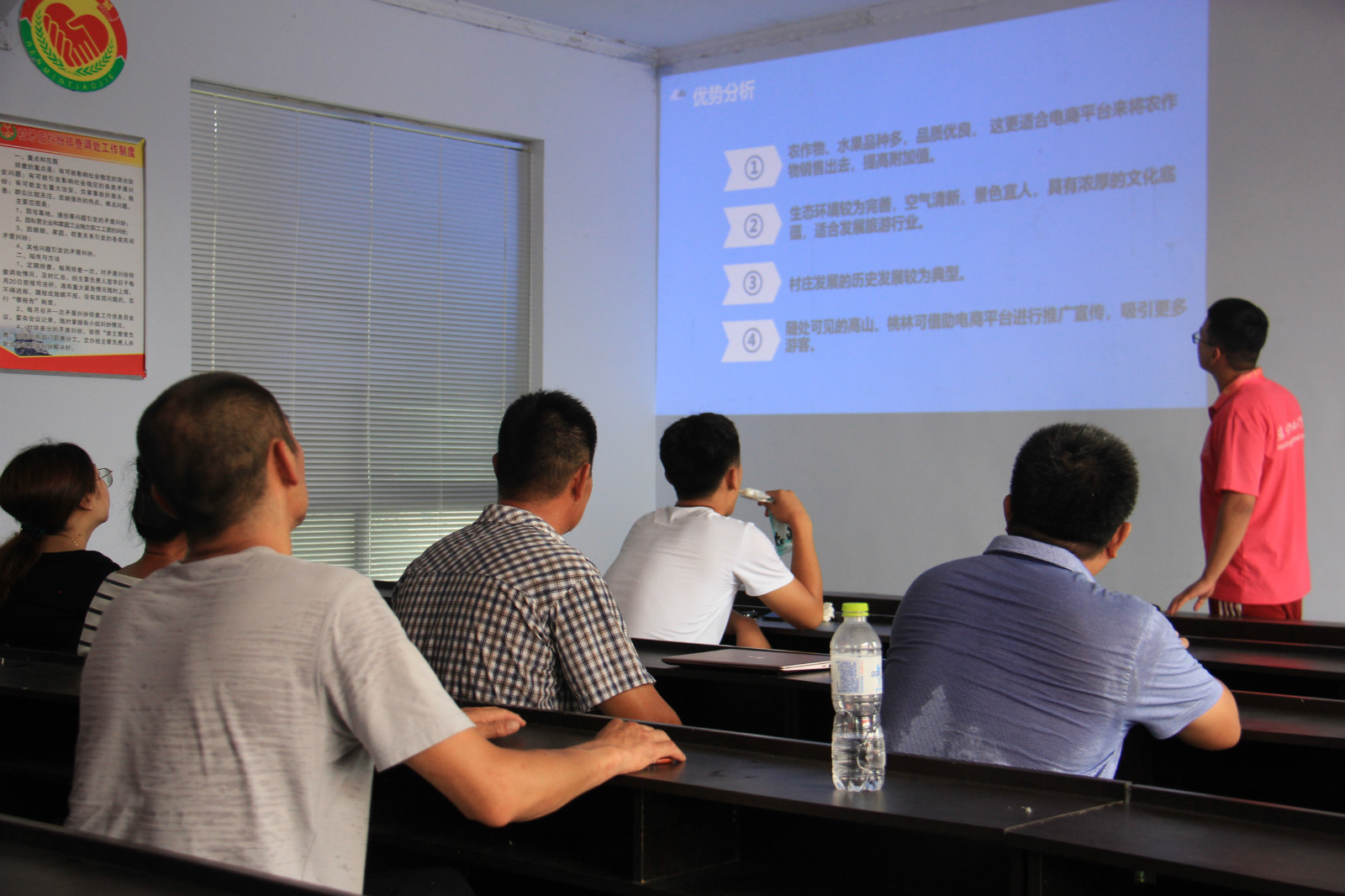 在全面调查分析村情民情的基础上,服务团将电商知识讲座与入户培训相结合,提升村民的电商意识和电商知识应用技能。服务团在常桑行村先后开展讲座5次,培训90余人次。对待每一次电商讲座,队员们都十分认真谨慎,集体准备讲座内容、收集讲座素材、制作PPT课件、演讲模拟,由于准备充分,讲座实用易懂,队员们的付出受到了村民的欢迎。考虑到村民电商知识基础差、计算机操作能力不强、农活忙、缺乏学习热情等实际情况,服务团主动“出击”上门,一对一辅导,对于每一名略有电商学习兴趣的村民,队员们都会给予耐心的指导,几天下来,村民们学习兴趣明显提高,部分村民开始主动请教,并让实践队员们帮忙开店。实践活动期间,队员们拜访了常桑行村四分之三以上的村户,发现、动员潜在培训对象40余名,开设、装修店铺30余个。为了方便后期服务跟进,服务团还组建了微信群,随时随地持续提供技术服务。服务团高效、接地气的培训模式和认真务实的精神得到了村民的喜爱和交口称赞。
