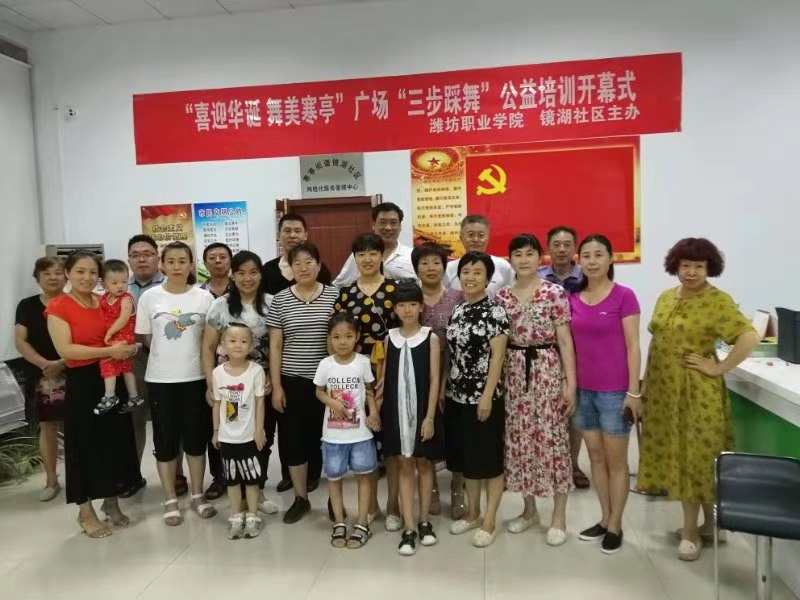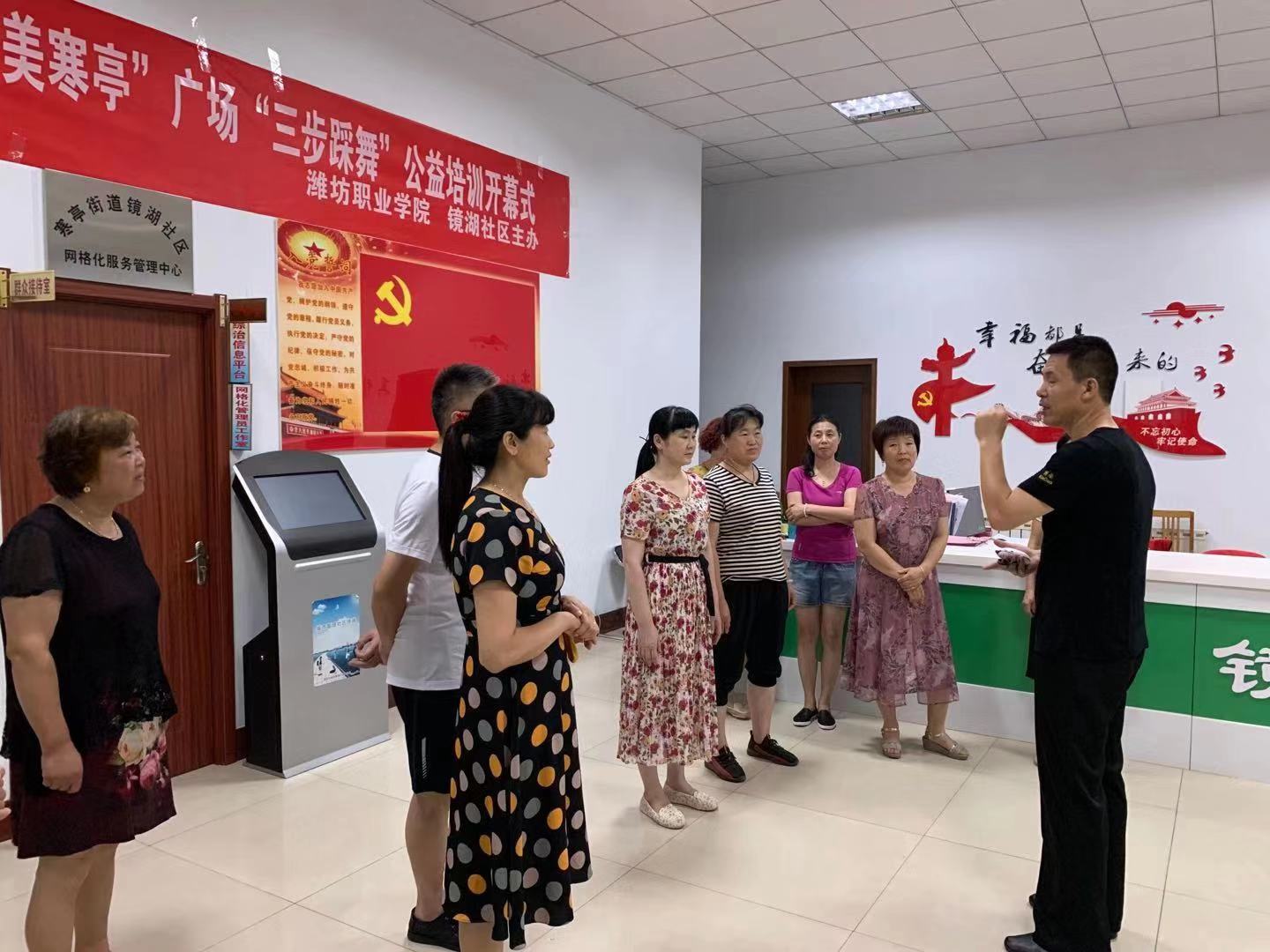 通识教育中心党支部等与寒亭街道镜湖社区开展"喜迎华诞 舞美寒亭“广场健身“三步踩舞“公益培训活动