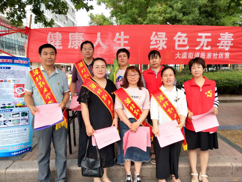 6月26日,国际禁毒日到来之际,办公室党支部、国际商务beplay(中国)党支部走进大禹街道陈家社区,开展以“健康人生,绿色无毒”为主题的禁毒宣传活动,以服务社区居民志愿活动的形式开展主题党日活动。