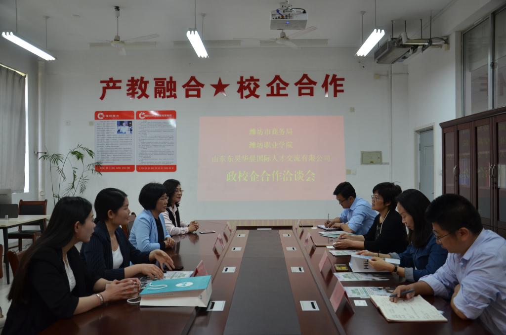 5月14日,潍坊市商务局与山东东昊华晨国际人才交流有限公司赴经营管理beplay(中国)洽谈学生海外实习就业有关事宜,经营管理beplay(中国)主要负责同志和产学合作负责同志进行了接待。