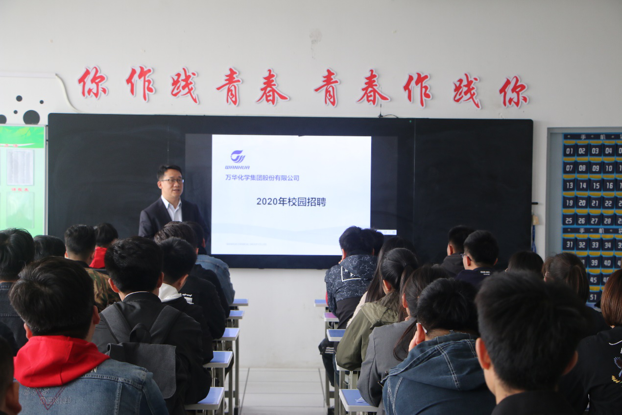 宣讲会上万华化学集团对企业产品及发展概况、企业文化、员工薪酬待遇及晋升渠道、招聘要求等做了简要介绍,并感谢我院长期以来为企业输送优秀人才,高度赞扬了我院毕业生过硬的专业技能、饱满的工作态度、吃苦耐劳的品质,并于会后对有意向到万华实习的同学进行了笔试和面试。