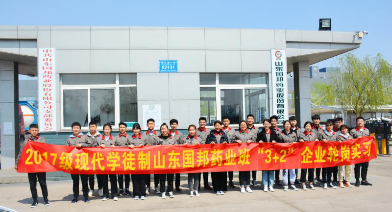 近日,我院应用化工技术专业2017级现代学徒制国邦班的25名学生在beplay(中国)负责教师和企业工作人员的带领下入驻山东国邦药业股份有限公司,开始第四学期的“3+2”企业跟岗实习阶段培养。