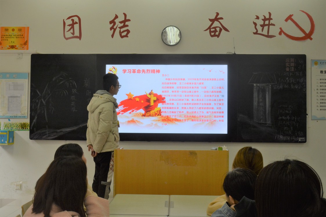 活动中,各班组织同学们通过多种形式讲述了多个可歌可泣的英雄事迹,从历史中的抗日民族英雄到新时代的时代楷模、劳动模范,无不展示了他们令人敬佩的英雄气概、爱国情怀和民族精神,同学们通过后续的讨论表达了缅怀革命先烈,弘扬英雄精神,扎实学习报效祖国的理想抱负。习近平总书记说过,“和平年代同样需要英雄情怀”,一切民族英雄,都是中华民族的脊梁,他们的事迹和精神都是激励青年学子前行的强大力量。