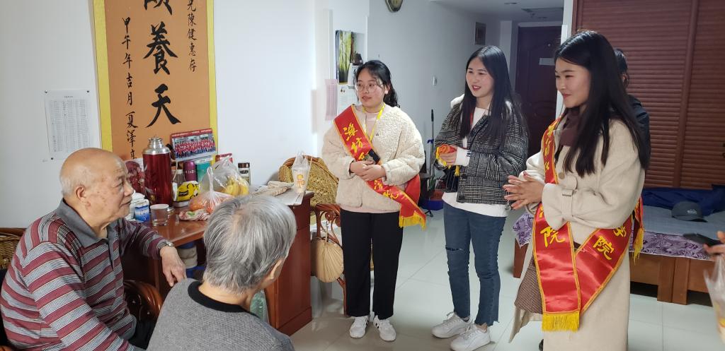 来到养老院后,志愿者们首先为老人们分发带去的水果和点心,关心了解了全院的老人们。接下来志愿者们迅速分工,有的为养老院清扫房间和庭院,有的搀扶或帮助老人们推轮椅到院子里去晒太阳。在老人们面前,同学们主动蹲下身来为老人们剥水果、陪他们聊天、下象棋。多才多艺的志愿者们还为老人们演唱了他们熟悉的经典红色歌曲,让老人们近距离欣赏节目,感受到社会主义大家庭的温暖,因为志愿者们的到来,老人们十分高兴,敬老院里一片欢声笑语。