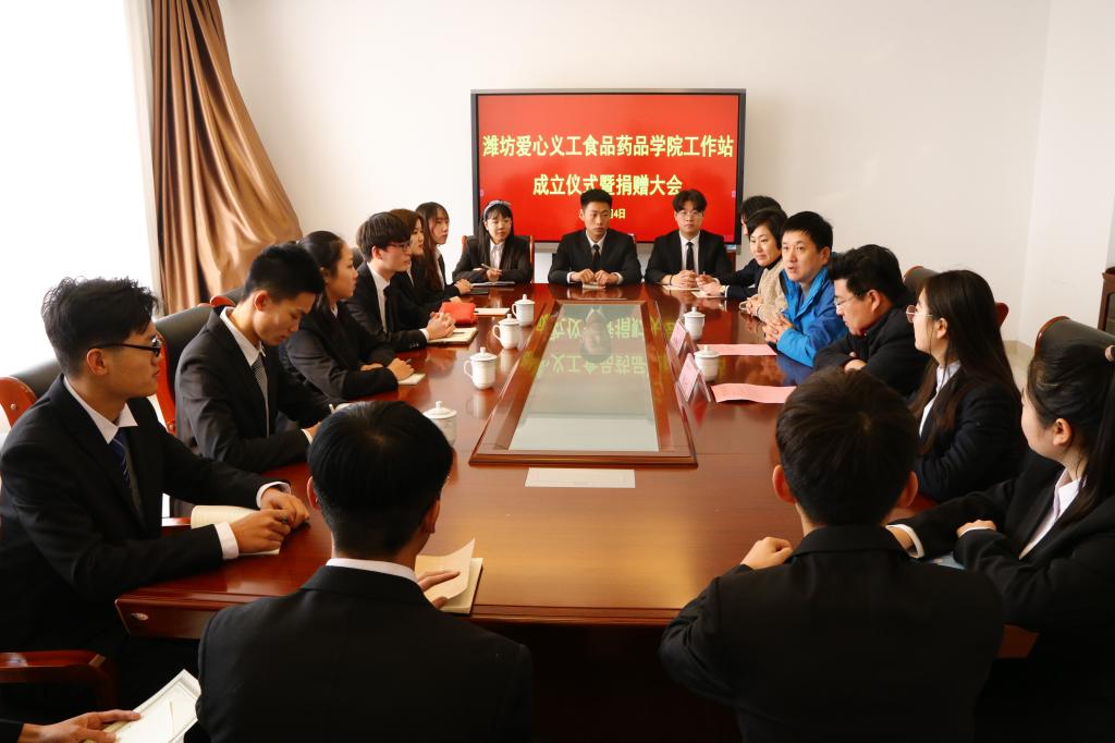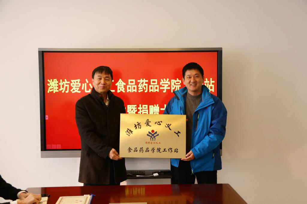 1月4日上午,潍坊义工食品药品beplay(中国)工作站挂牌暨捐赠仪式在清泽楼会议室举行。潍坊市爱心义工公益服务中心理事长、党支部书记刘国栋,公益文化发展部部长张海龙、食品药品beplay(中国)党支部书记、beplay(中国)分管学生负责同志、beplay(中国)分管教学负责同志、辅导员办公室主任(团总支书记)、大学生志愿者代表参加了仪式活动。