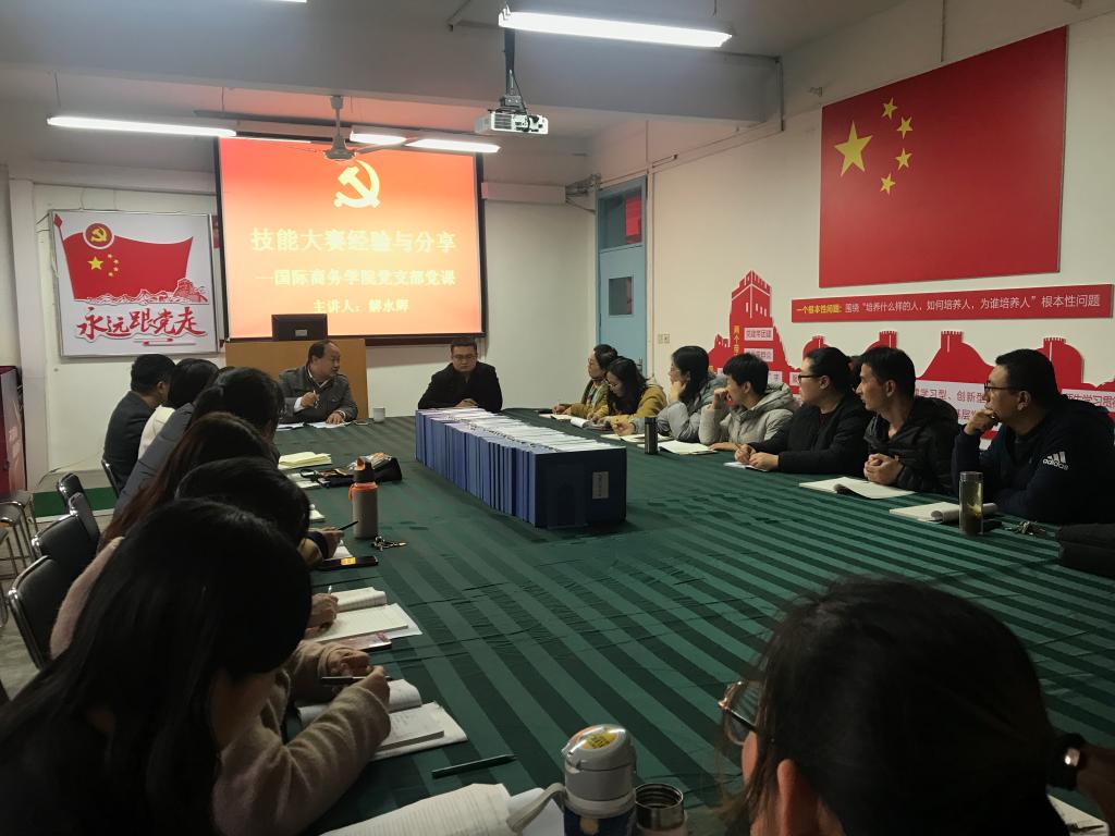 国际商务beplay(中国)党支部积极发挥党建对各项工作的引领带动作用,为有效解决制约部门发展的技能大赛问题,12月20日,党支部邀请机电工程beplay(中国)负责人、中共党员解永辉开展“现身说法上党课”活动。