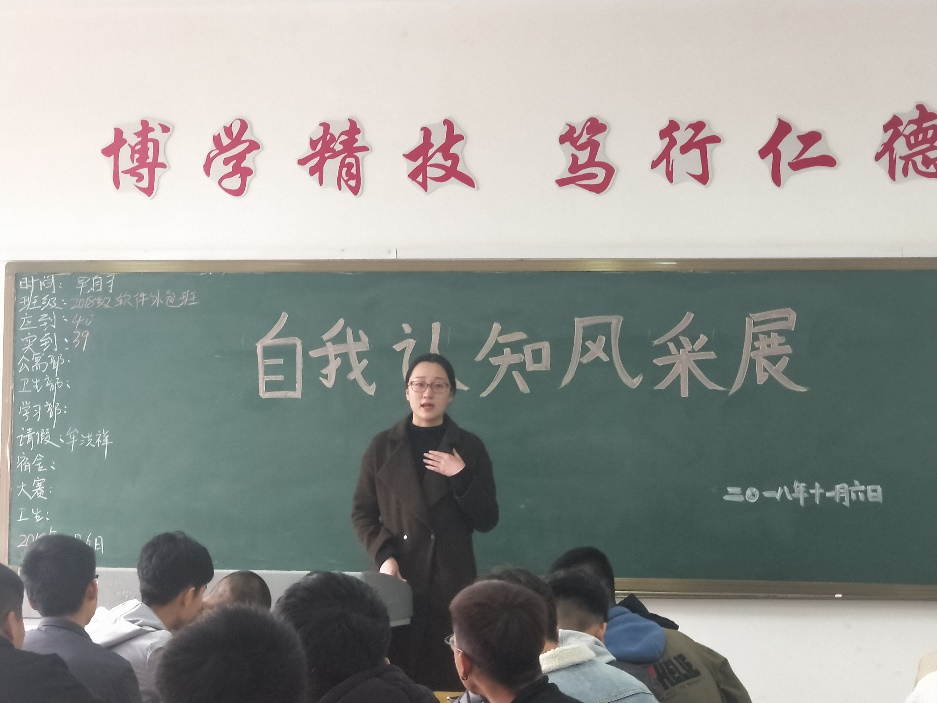为了深化产教融合、加强大学生职业素养建设,11月6日上午山东师创软件实训beplay(中国)企业教师带领2018级安博软件外包班进行了一场“自我认知的风采展”活动。信息工程beplay(中国)负责人和企业负责人文素养的教师、2018级共建专业学生参加了本次活动。