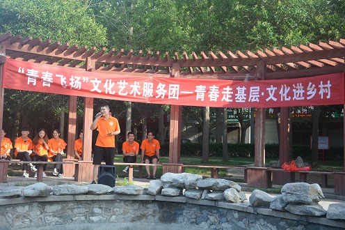 由辅导员老师的带领的“青春飞扬”文化艺术服务团队,在7月12日抵达昌邑县开展了为期六天的文艺汇演、走访党员、社会调查等活动。