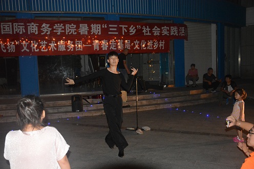 据悉,“青春飞扬”文化艺术服务团队在这为期六天的三下乡活动中,上午走访农村、社区的老党员,聆听老一辈革命家的故事;下午搞社会调查和学校招生宣传;傍晚开始整理文艺汇演的现场,晚上则给村民们带来一场丰富多彩的文艺晚会。