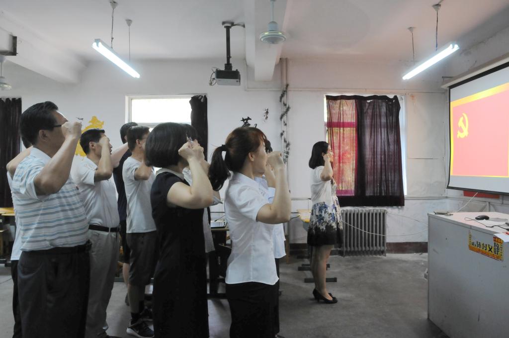 6月28日下午,五年制高职部全体党员面对鲜红的党旗,重温入党誓词。庄严的宣誓声拉开了党支部纪念建党97周年庆“七一”系列活动的序幕。