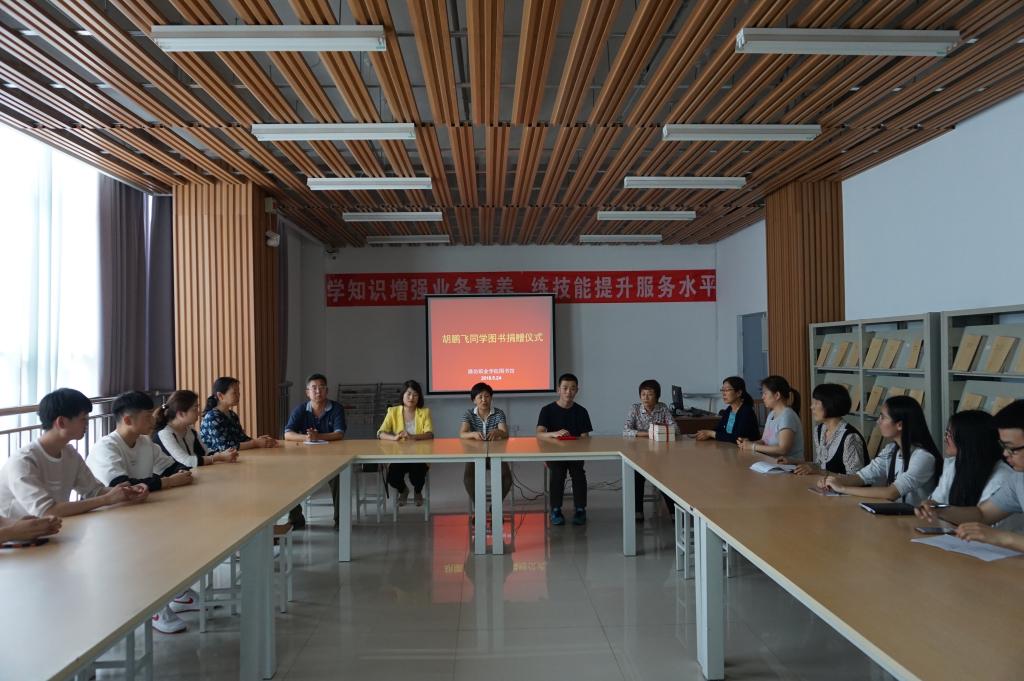 5月24日,“胡鹏飞同学图书捐赠仪式”在我院图书馆举行,图书馆主要负责同志、科室负责人、胡鹏飞同学的班主任、采编部全体老师及部分学生代表参加了仪式。