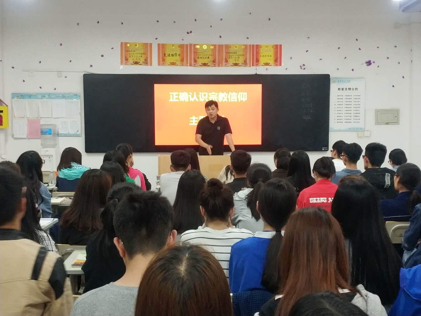 为使广大学生进一步提高识别、抵御和有效防范邪教的能力,培养学生正确的世界观、人生观,食品药品beplay(中国)于5月21日组织各班级召开了“正确认识宗教信仰”主题班会。