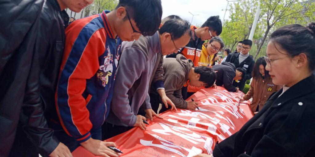 活动现场气氛活跃,同学们争相在印有“4.23世界读书日, 让读书成为一种时尚, 让学习成为一种习惯”字样的横幅上签名。谈起前来签名的理由,不少同学表示,当今快节奏的社会生活的确容易使大学生过度关注肤浅通俗的文化,从而忽视了阅读的重要性,此次读书节的倡议,提醒了各位读者捧起书本、用阅读丰富生活的重要性。