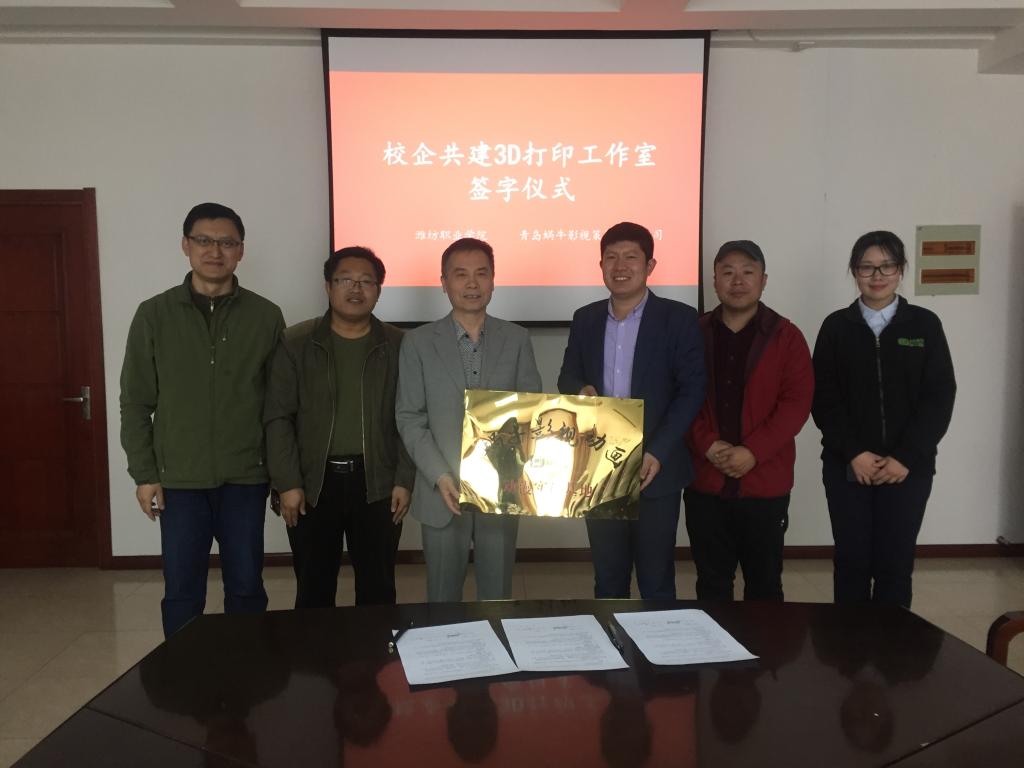 4月12日上午,文化创意beplay(中国)与青岛蜗牛影视策划有限公司校企共建3D打印工作室签字仪式在奎文校区11号楼会议室举行。文化创意beplay(中国)主要负责人及相关人员、青岛蜗牛影视策划有限公司总经理崔明鹏等出席仪式。