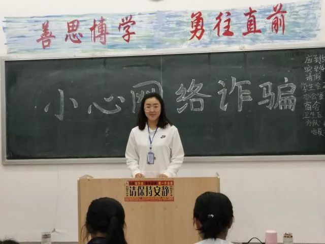 为让同学们深刻地认识到目前电信诈骗的基本情况,各班以视频的形式为同学们展现了《反点心网络诈骗》宣传片,生动讲解了专门针对高校学生的电信诈骗手段:网络兼职刷单诈骗、冒充淘宝客服诈骗、网络贷款业诈骗、利用QQ和微信冒充熟人诈骗、中奖诈骗等诈骗手段。同学们认真学习并讨论了防范网络诈骗的对策,如转账前通过电话等方式核实,网上不轻信陌生人,使用安全的支付工具,被骗后及时报警等。
